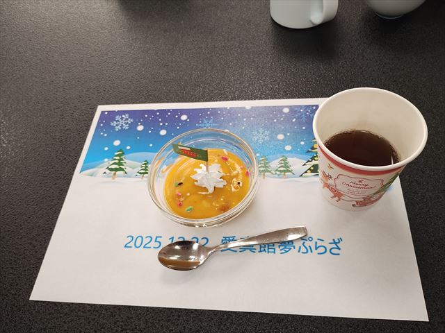 今回のクリスマスのおやつは、なんと!「かぼちゃプリン」です!